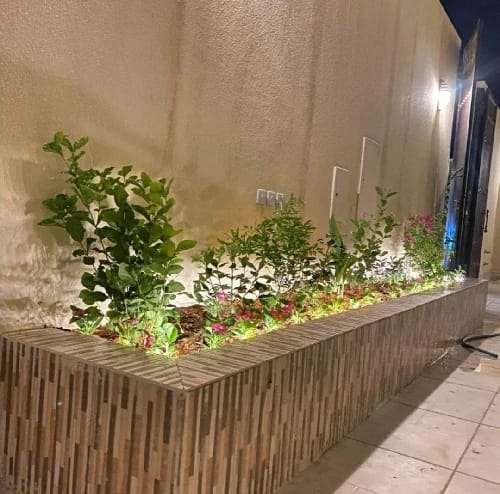 مع العمل على تصميم شبكة ري كاملة (عادى – اتوماتيك) والعمل على تصميم الديكورات الزراعية والحجرية ( التيل الصناعي – شلالات ونوافير – اضاءة الحدائق ) مع امكانية رش المنازل بالمبيدات الحشرية وتلقيح النخيل ورش التمر من الغبير